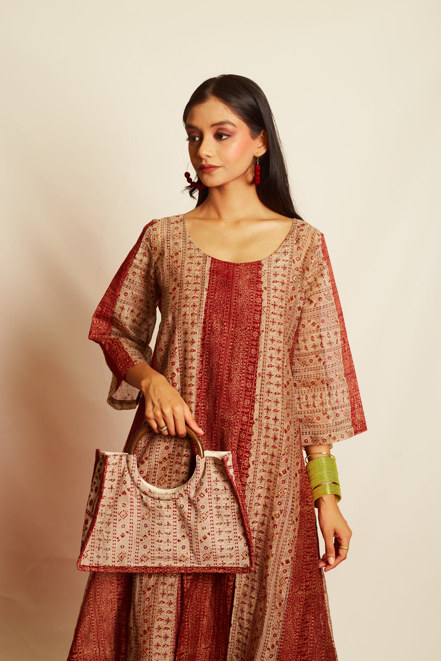 Jashan Surkh -Surmai Chanderi Kurta with Pants (Set of 2)